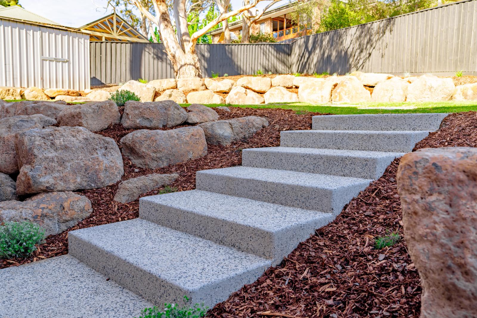 - Retaining walls (concrete, block, sleeper, stone)